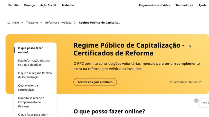 Para aderir aos Certificados de Reforma ou fazer a simulação, aceda ao Portal da Segurança Social, menu Trabalho > Reforma e Invalidez > Regime Público de Capitalização – Certificados de Reforma.